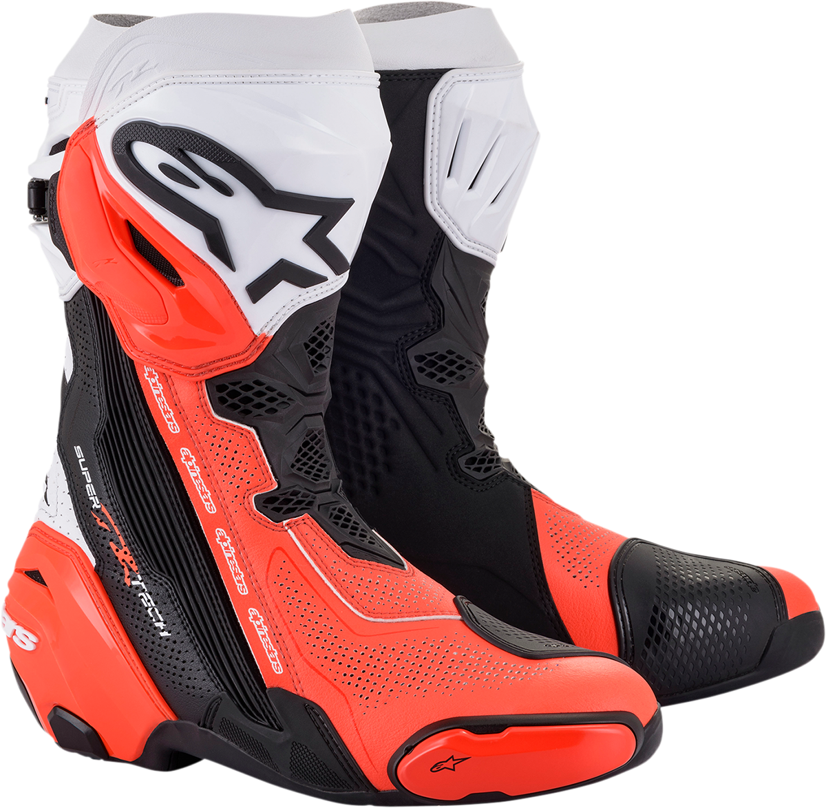 The Alpinestars Supertech R Vented Boots are the epitome of high-performance motorcycle gear, brought to you by DMG Motorsports. These boots offer a host of features designed to enhance your riding experience.