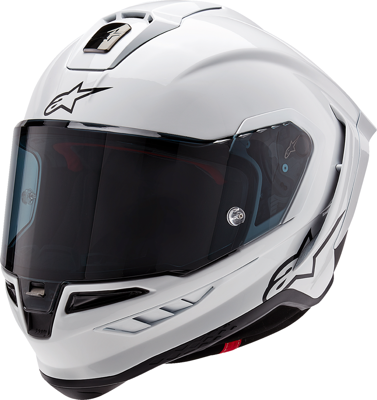 Furnished by DMG Motorsports, the Alpinestars Supertech R10 Helmet showcases state-of-the-art design and technology. Its innovative construction combines a 3K high-density carbon outer layer with a composite layer, aramid fiber layer, and a fiberglass one Features: