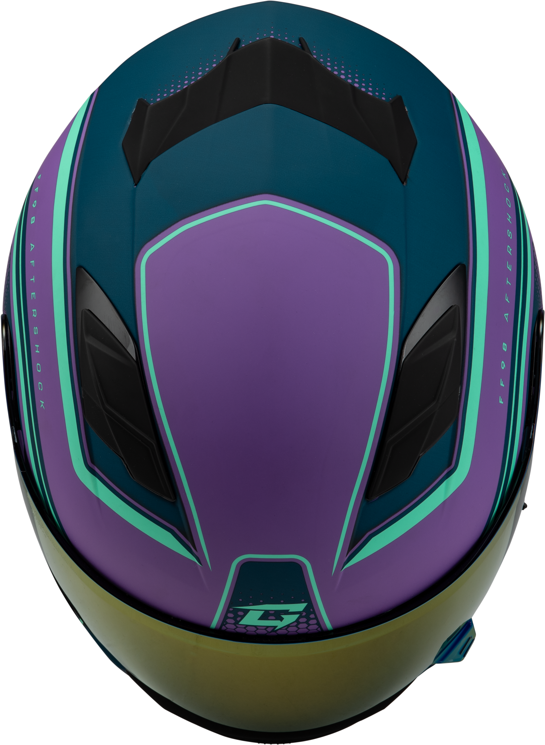 DMG Motorsports presents the GMAX FF-98 Aftershock Helmet in an eye-catching blue and matte purple color. The helmet prides itself with its unique quick release face shield mechanism with shield lock, integrated LED rear light, and an optional upgrade to our Brake Light Kit. The interior showcases SpaSoft™ lining that keeps you dry and comfy while its COOLMAX® CORE technology wicks moisture away from your body and dries quickly. Charcoal bamboo fiber keeps the odor away by eliminating bacterial growth.