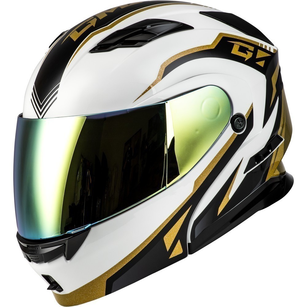 Set out on your cross-country journeys with the GMAX MD-01 Volta Helmet, available from DMG Motorsports. This helmet is ECE/DOT approved for maximum safety and features eleven vents with a COOLMAX® core technology to wick moisture away, keeping you comfortable on hot days. The helmet further includes a drop-down sunshade with anti-fog coating and an integrated LED light for enhanced visibility. The helmet's interior is lined with SpaSoft™ for easy cleaning and custom fitting. Lightweight Poly Alloy shell weighing only 4.1 lb for a large size, and easy to use chin bar with push to open mechanism designed for one hand use with gloves.