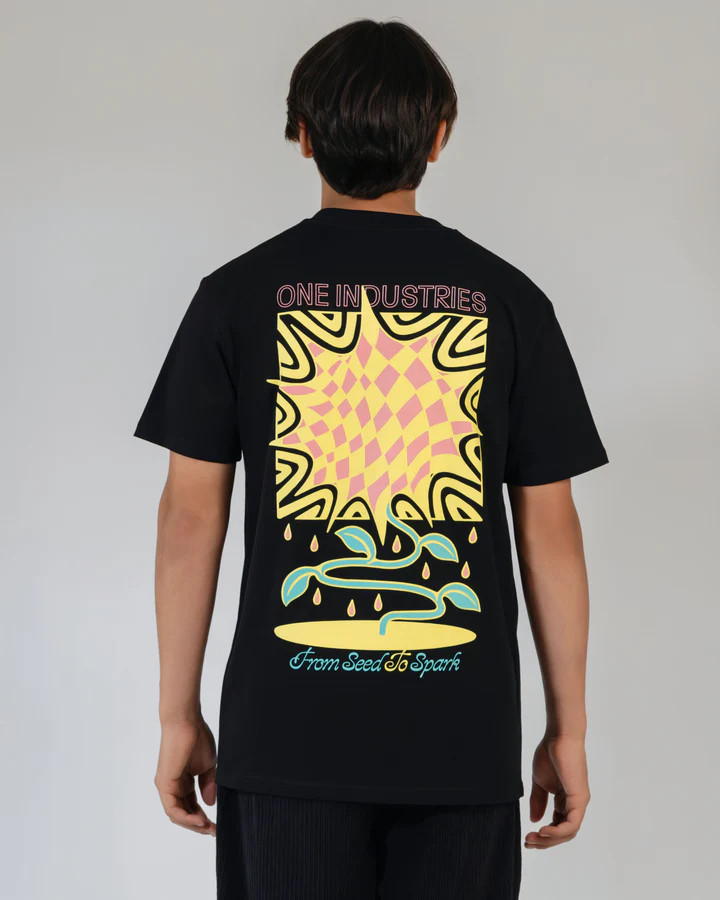A seed bursting to life - shooting vibrant sparks in all directions - perfectly captures the spirit of the art on this Tee. With a relaxed fit and heavyweight 6.5 oz, 100% combed cotton, it’s designed for durability. It features a ribbed neck, side seams, shoulder-to-shoulder taping, and preshrunk fabric to minimize shrinkage.