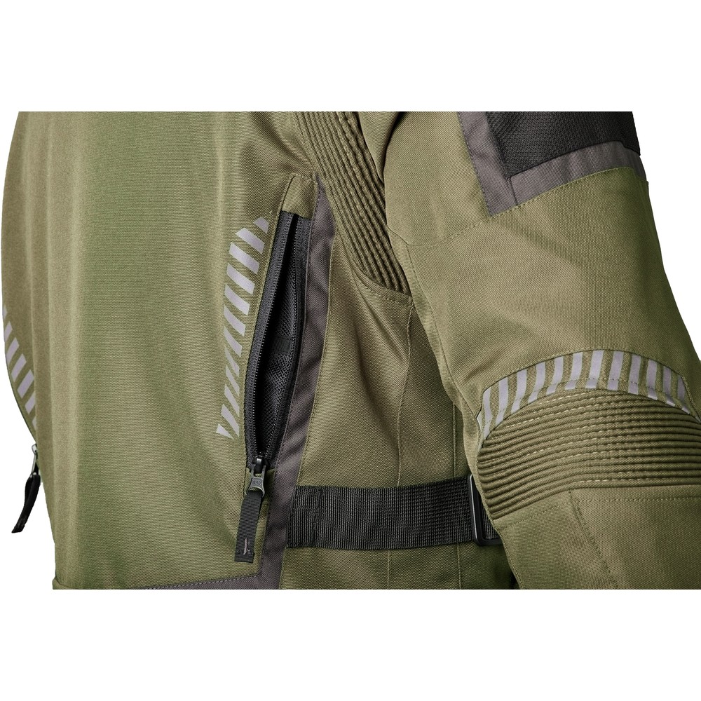 Introducing the RST Maverick EVO CE Jacket in Khaki/Grey by DMG Motorsports. This state-of-the art touring jacket has improved its fit and added hand warmer pockets, perfect for those who desire comfort and functionality. The incorporated SinAqua waterproof membrane and quilted thermal liner are removeable and interchangeable to suit all your riding needs. Reflective print for enhancing night-time visibility and large intake and exhaust ventilation areas to channel airflow for maximum ventilation.