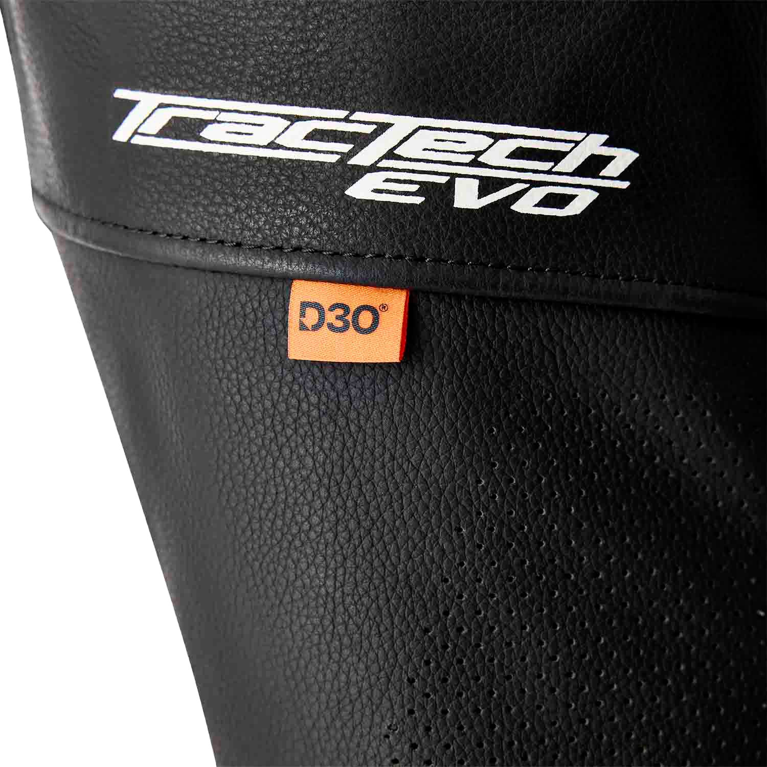 The RST Tractech EVO D3O Leather Jacket, marketed by DMG Motorsports, is a must-have for every motorcycle enthusiast. It is not just about the sleek black design; this jacket offers state-of-the-art protection with its D3O Armor. D3O is a patented protective material that is soft and flexible when worn, but hardens upon impact to provide optimal protection.