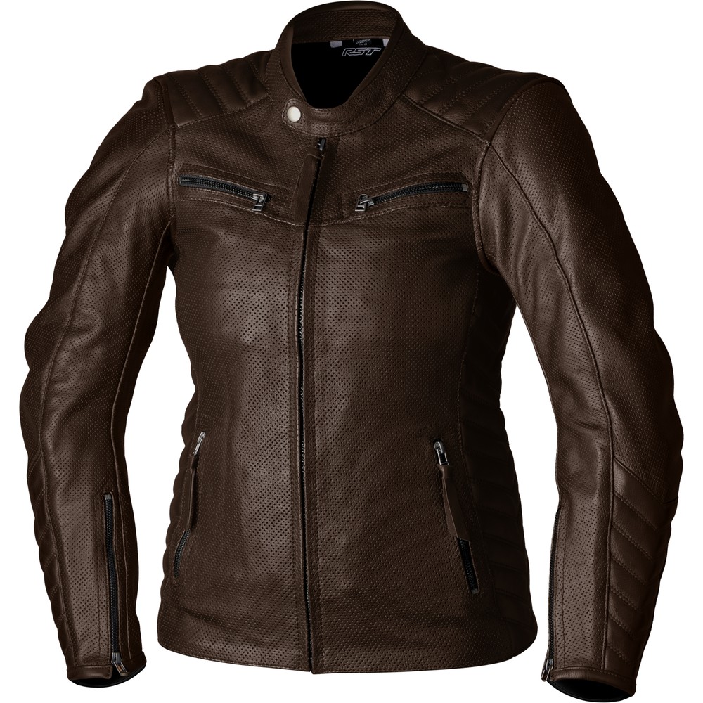 The RST Women's Roadster Air CE Leather Jacket - Brown presented by DMG Motorsports is a novel adaptation of the classic RST Roadster. This jacket has been designed for ideal usage in warmer weather conditions. The jacket is fully made out of perforated leather and has a light mesh liner for guaranteed body ventilation. This consideration helps not only in reducing the weight of the jacket but also facilitates an incredible level of airflow.