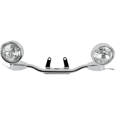 Presenting the SHOW CHROME Highway Bar Mini Driving Lights Kit from DMG Motorsports. These halogen lights will give your motorcycle an upgraded look while also improving road visibility. The lights come with a complete wiring harness, an isolation relay to protect your bike's circuit, and two styles of switches for easy operation.