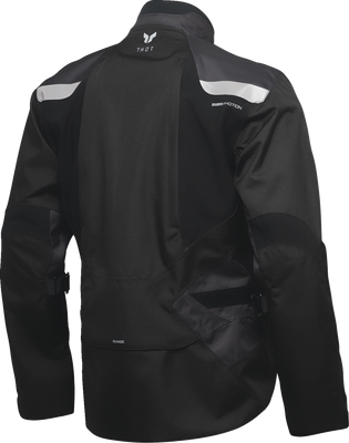 Discover the THOR Range Jacket at DMG Motorsports. A masterful blend of function and style, this jacket is engineered with a waterproof and breathable laminate, boasting a 20,000mm waterproof rating, ensuring rainproof performance even under pressure.