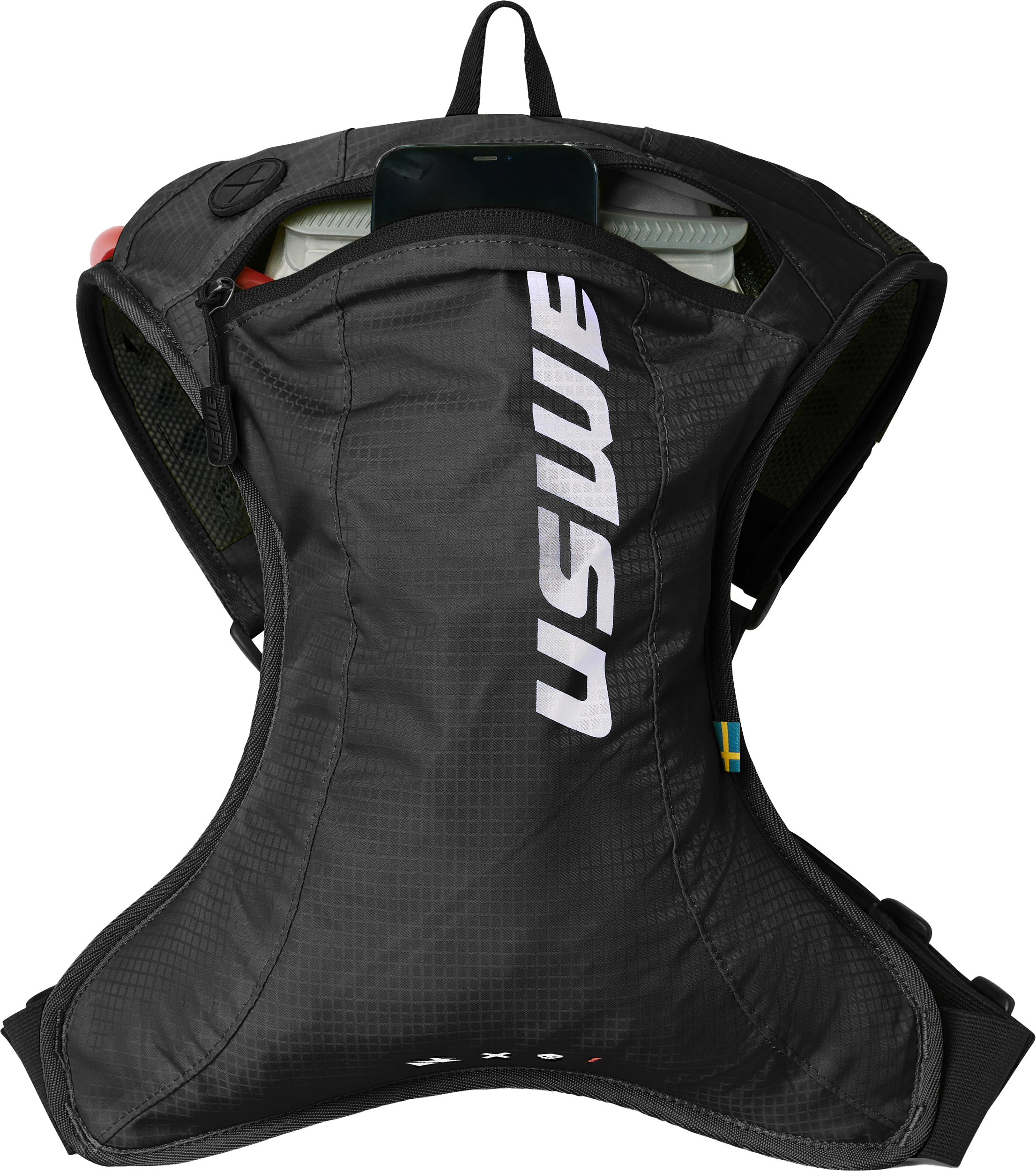The USWE Outlander Moto Hydro Pack - 2L Black is the latest update to the Outlander Moto hydration pack series, delivered by DMG Motorsports. This upgraded model boasts new, advanced materials alongside a lightweight, minimalistic design that fits comfortably on your back during all your rides. The pack provides ample storage for all your essential gear, despite its streamlined construction. The patented NO Dancing Monkey 1.2 harness system ensures a bounce-free ride, keeping the pack secured, regardless of conditions. An elastic harness system facilitates a tight fit without compromising breathability and movement.
